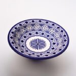 Une assiette marocaine de haute qualité, en argile et en céramique, avec des couleurs naturelles berbères et un design géométrique.