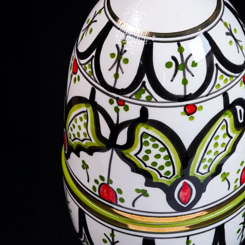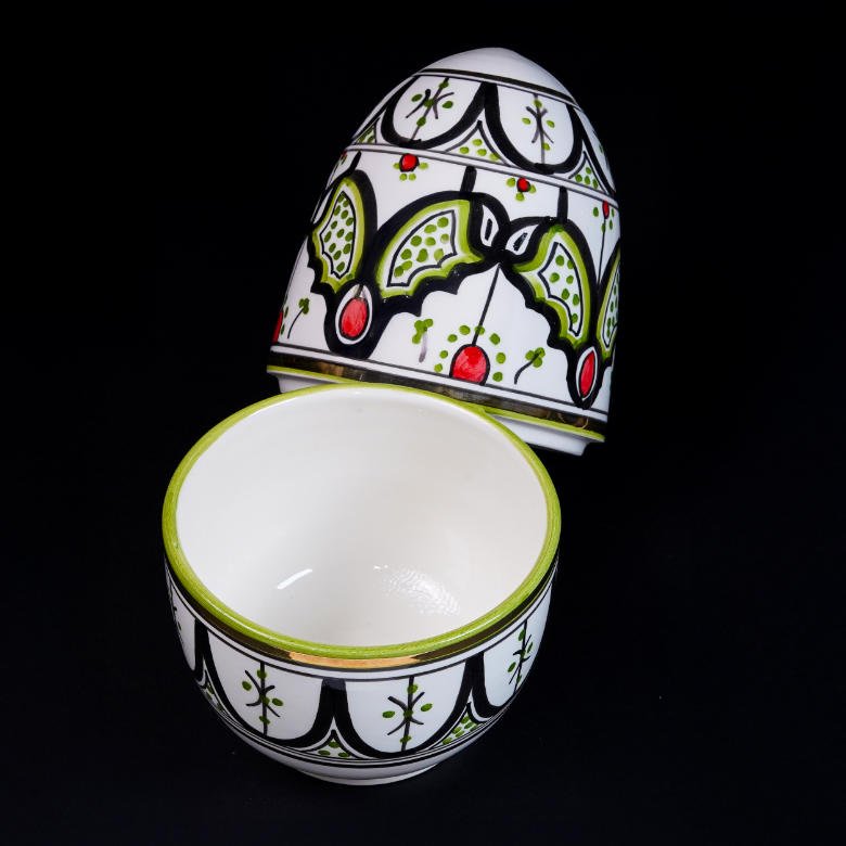 Ces bols sont généralement en céramique et sont caractérisés par leurs motifs traditionnels marocains, souvent peints à la main avec des couleurs vives et des détails complexes. Ils sont utilisés pour servir divers plats, comme des soupes, des ragoûts, des salades, ou pour conserver des épices et des condiments. Le couvercle permet de garder le contenu au chaud et au frais.