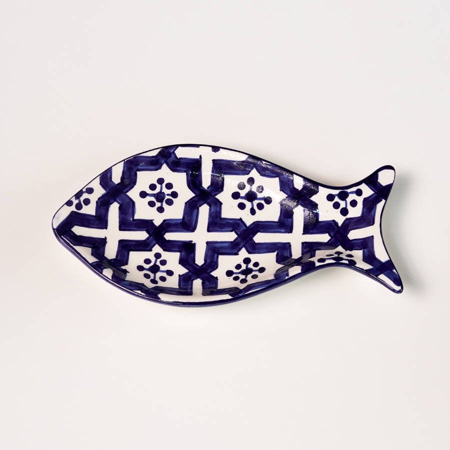 Authentique plat marocain en forme de poisson de haute qualité, Fabriqué avec de l’argile et de la céramique.